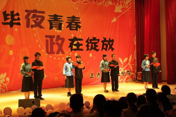 政法学院于6月6日晚7:00,在科学校区电教楼208室举办了“毕夜狂欢,政在绽放”大型毕业晚会。政法学院院长刘春兵老师、党总支书记王林焕老师、副院长闻英老师、党总支副书记郭祥远老师以及全体辅导员老师和政法学院全体学生共同观看了本次晚会。