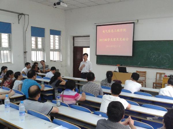 11日16:00,电气信息工程学院在电西阶会议室召开2013级新生家长见面会。学院领导班子、党政办、学工办、分团委负责人,2013级学生辅导员老师参加见面会,会议由总支副书记刘吉彬老师主持。