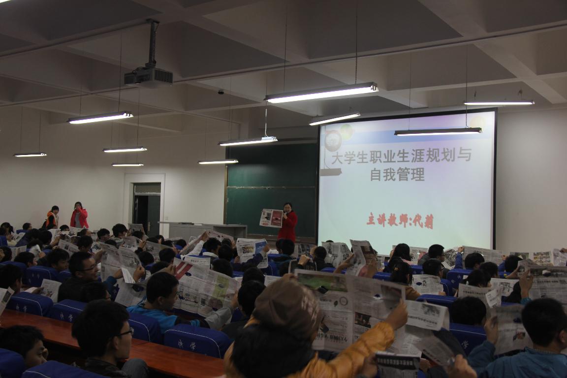 讲座从现场互动游戏开始,以生动活泼的案例引导学生树立自我认知、职业准备、自我管理的意识。代莉女士强调在人生的职业生涯发展道路上,重要的不是你现在所处的位置,而是下一步迈出的方向,如果方向找对,每走一步将会带来无限的希望。她要求同学们从今天开始,从现在开始,积极主动,科学思考,做好自己职业生涯的规划,实现人生价值的最大化。