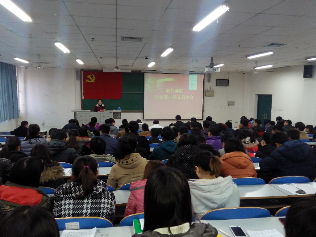 为加强对学生党员的教育和管理,强化党员意识,提高党性修养, 12月12日下午,软件学院学生第一、第二党支部分别在三教楼103和106教室召开了支部大会。