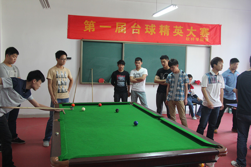 为丰富大学生课余文化生活,增近大学生之间的体育文化交流,软件学院于5 月4号—5月8号在软件楼100举办了“以球会友,健身为本”为主题的第一届精英台球比赛。