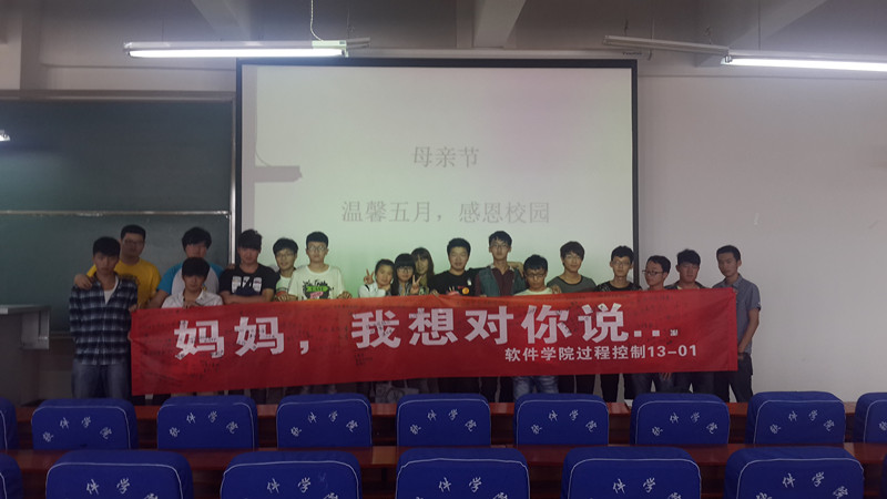 在班级团支部组织感恩母亲节活动中,软件学院过程控制13-01班团支部在软件楼219举办了“给妈妈打一个电话、报一声平安,为妈妈写一句祝福、表一个心愿”主题班会,在班会中,同学们通过打电话的方式向母亲表达祝福之情,当电话接通后,全班同学一起大声喊道:“妈妈,我们爱你”,听着电话那头的母亲幸福的笑声,大家心里感到温暖和快乐。接着进行母亲节感恩签名活动。大家都把自己对母亲的祝福写在了条幅上:“离家太远,不能当面给您祝福,愿您健康开心”,“儿行千里母担忧,妈,千万里的祝福写在这里”,“感谢妈妈对我20年的养育”,“我一定会好好孝顺您的”。一句句发自肺腑的言语,让校园中弥漫了满满的温暖和感动。
