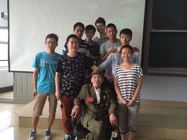 报告会开始,孙老先生唱起了30年代流传在郑州的一首民谣,再现了解放前郑州人民的苦难生活;三首革命歌曲后,孙老先生声情并茂地追叙从军参战时的种种经历。他说:“那个时候我的战友被日本人流弹打中,身上的毛衣胸口染成了大片红色,牺牲前对我说让我把毛衣带回去给他老母亲,说儿子没有好好的完成任务,没有赶走日本人,没有给他争气。”他用铿锵的语言,讲述解放郑州战役中小英雄小山子和小冬子的故事,感动着在场的每一个同学。他用朴素的语言深情回顾了革命战争走过的峥嵘岁月,岁月的流逝并不能磨去他的执著和坚韧。孙老先生还讲述了从军时学习的艰难,大家没有固定的教室,就在行军的路上学习,每人身后背着一个小黑板,后边的战士就在前面的黑板上写字,学习中不时还会遇到敌人的袭击。孙老先生说:如今同学们学习环境好了,有优秀的老师、宽敞的教室、先进的教学设备……大家更应该努力学习,报效祖国。报告会现场不时赢得同学们的阵阵掌声。