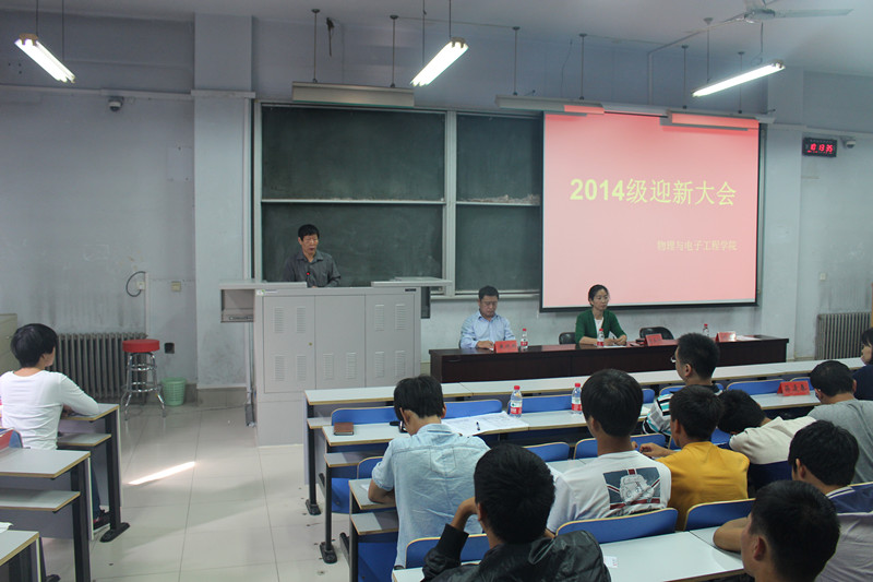 9月29日上午9点半,物理与电子工程学院在东一楼318召开2014年迎新暨入学教育大会学院领导、各科室负责人、全体辅导员和2014级新生参加了本次大会。