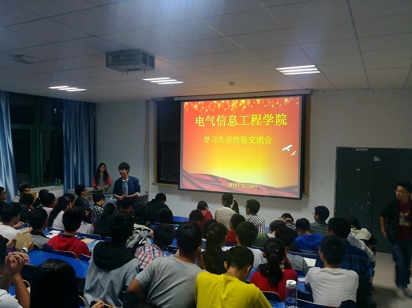 10月24日19:30,电气信息工程学院分别在教三楼201、教二楼230教室开展学习生活经验交流会,研究生、高年级代表及2014级全体学生参加交流。