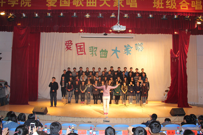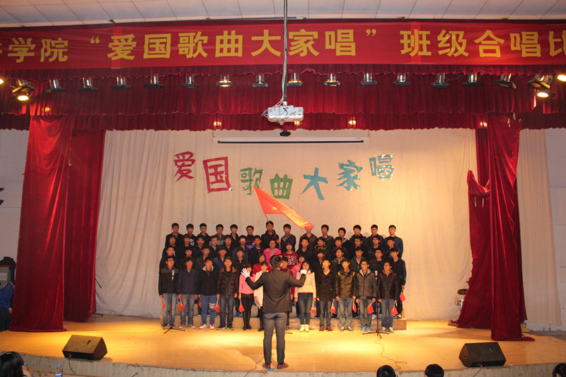 比赛在软件会计14-01班《歌唱祖国》声中拉开帷幕,来自16个班级组成的合唱队以饱满的激情,昂扬的斗志,用青春与热情诠释着爱国之情。《国家》、《我的中国心》、《保卫黄河》、《中国军魂》、《映山红》等一首首脍炙人口的爱国歌曲表达了当代大学生内心炽热的爱国情怀。其中来自软件会计14-01班的《映山红》以整齐的服装,嘹亮的歌声,精彩的创意表演赢得了评委和观众的热烈掌声。随着嘉宾表演一曲优美的《看那最远的地方》,爱国歌曲合唱比赛圆满落下帷幕。
