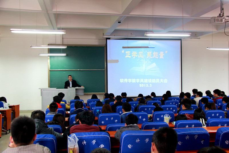 3月25日中午,软件学院在软件楼219召开了“正学风聚能量”学风建设动员大会。我院党总支副书记武丰龙、专兼职辅导员,学生组织主要干部及各年级班长、学生代表参加了此次会议。