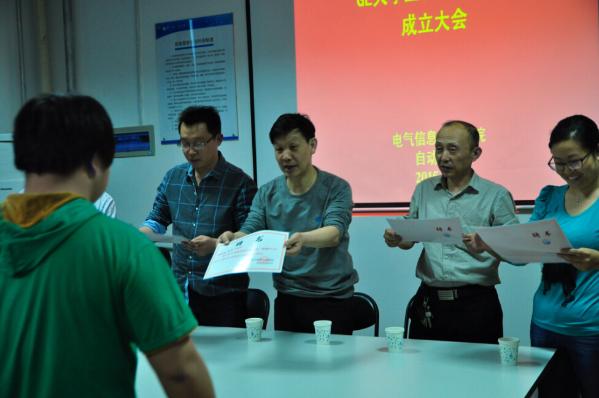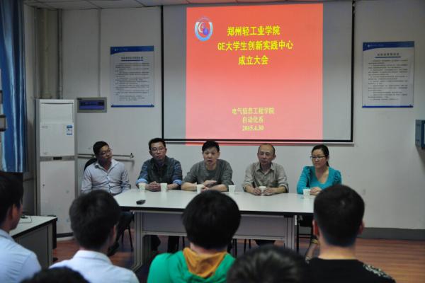 下午,电气信息工程学院GE大学生创新实践中心成立大会在西二楼206 GE自动化系统集成实验室举行,电气信息工程学院崔光照院长,党总支宋文军副书记,电气信息工程学院郑安平副院长,自动化系姜素霞主任,分团委许海龙书记、GE大学生创新实践中心全体学生及部分老师参加了大会。