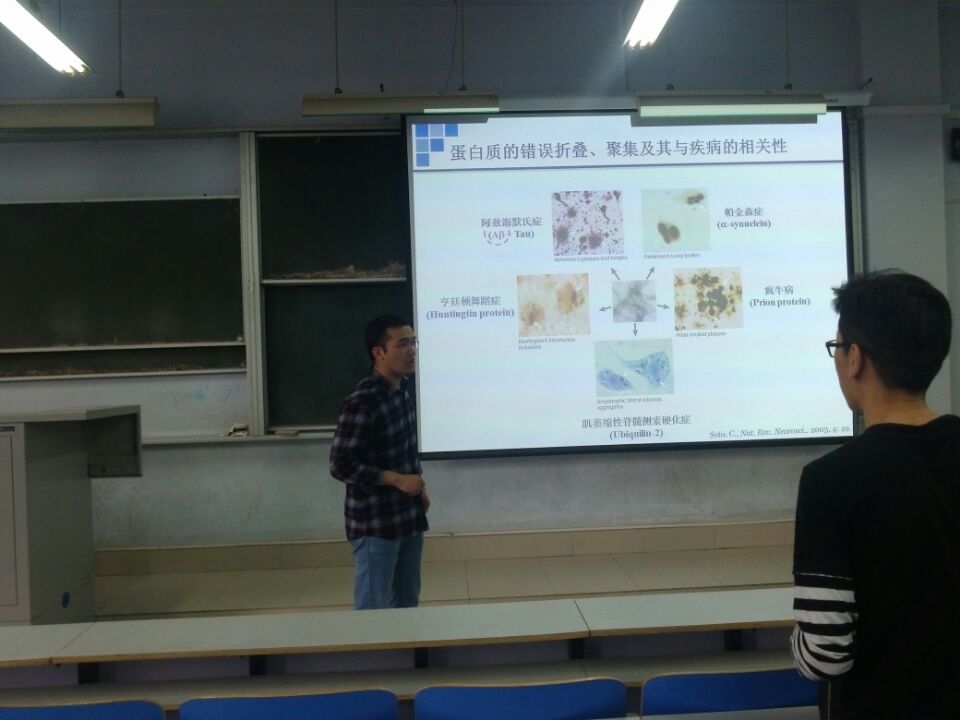 2015年5月7日,物理与电子工程学院谢罗刚博士在东风校区东一楼318教室做了“碳纳米颗粒调控淀粉样短肽的聚集”的学术报告,我院教师和学生参加了此次报告。
