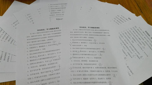 活动中采用问卷调查的方式在同学中广泛宣传,收集并整理学风建设中出现的状况及同学对院系开展各活动的满意度。学院通过此次普查的信息材料,及时分析采取相应的对策,改善一些不合理的措施,保证学风建设工作的有效实施。加强师生之间的交流,推行适合学风建设的有效措施,着力改善提高电气学院的学习氛围。