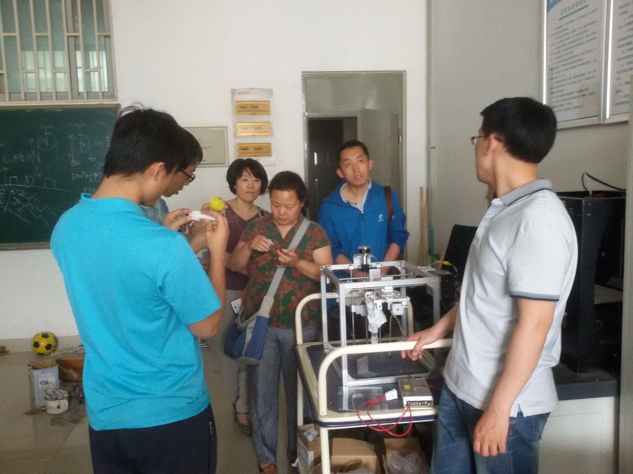 该实验室以学生为主体设计制备出大量仪器:3D打印机、五轴自由度精密加工车床、机器人手臂等。李老师向我们详细介绍了3D打印机的工作原理及其分类、目前发展现状及缺点,并着重介绍了如何引导学生充分利用网上开源资源,设计开发设备。通过此方学习,我们对3D打印机有了更深层次的系统了解,同时就物理相关专业知识进行了热烈的讨论,初步达成了后期合作方案。