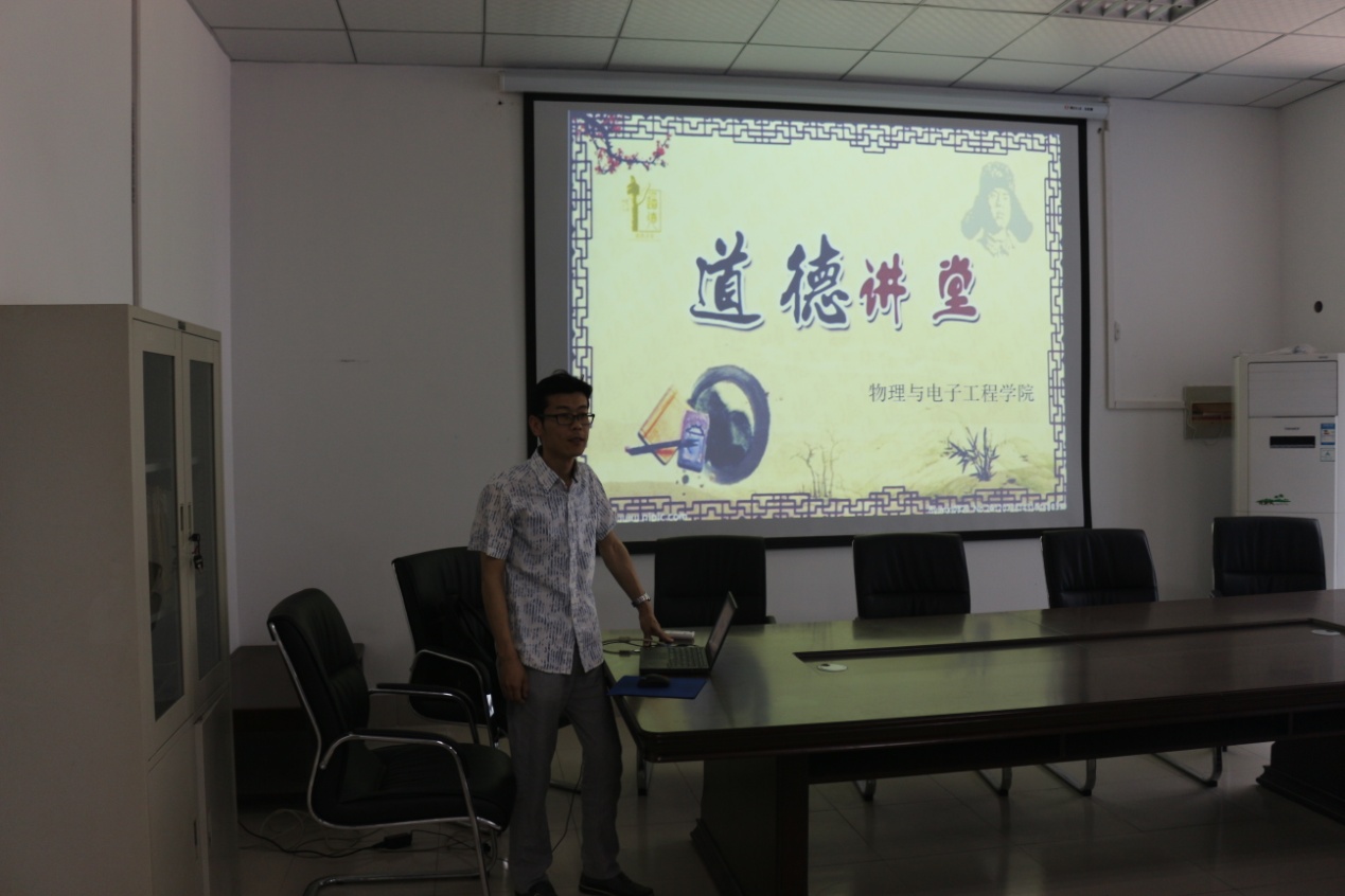 5月25日上午10点,物理与电子工程学院在东一楼301室为全体2014级学生开展了道德讲堂系列活动之“道德的过去与今天”的演讲会,主讲人为王永强博士。