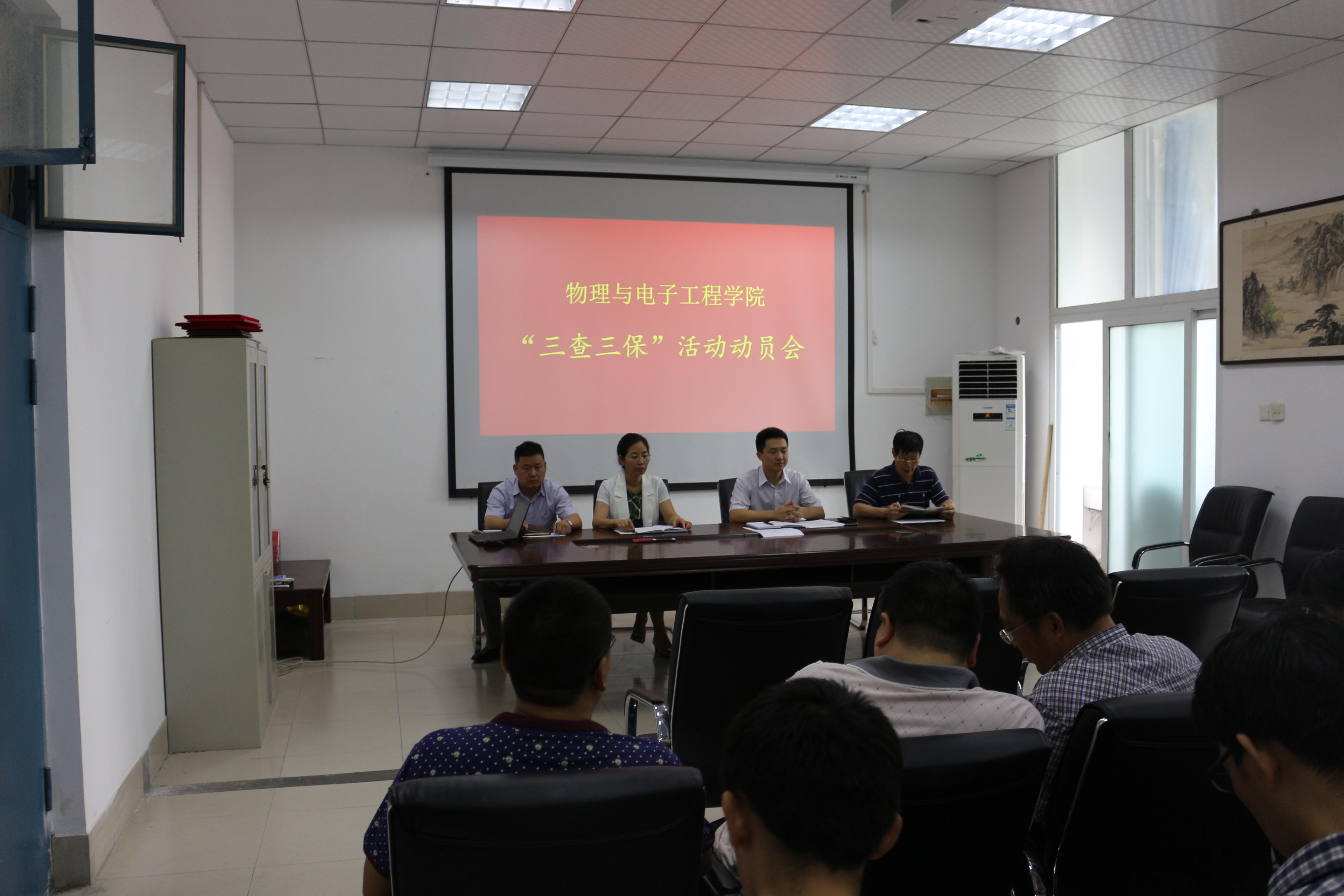 7月11日上午,物理与电子工程学院党总支召开“三查三保”活动动员会,安排部署学院安全稳定工作。院班子成员及全体教职工参加了动员会。