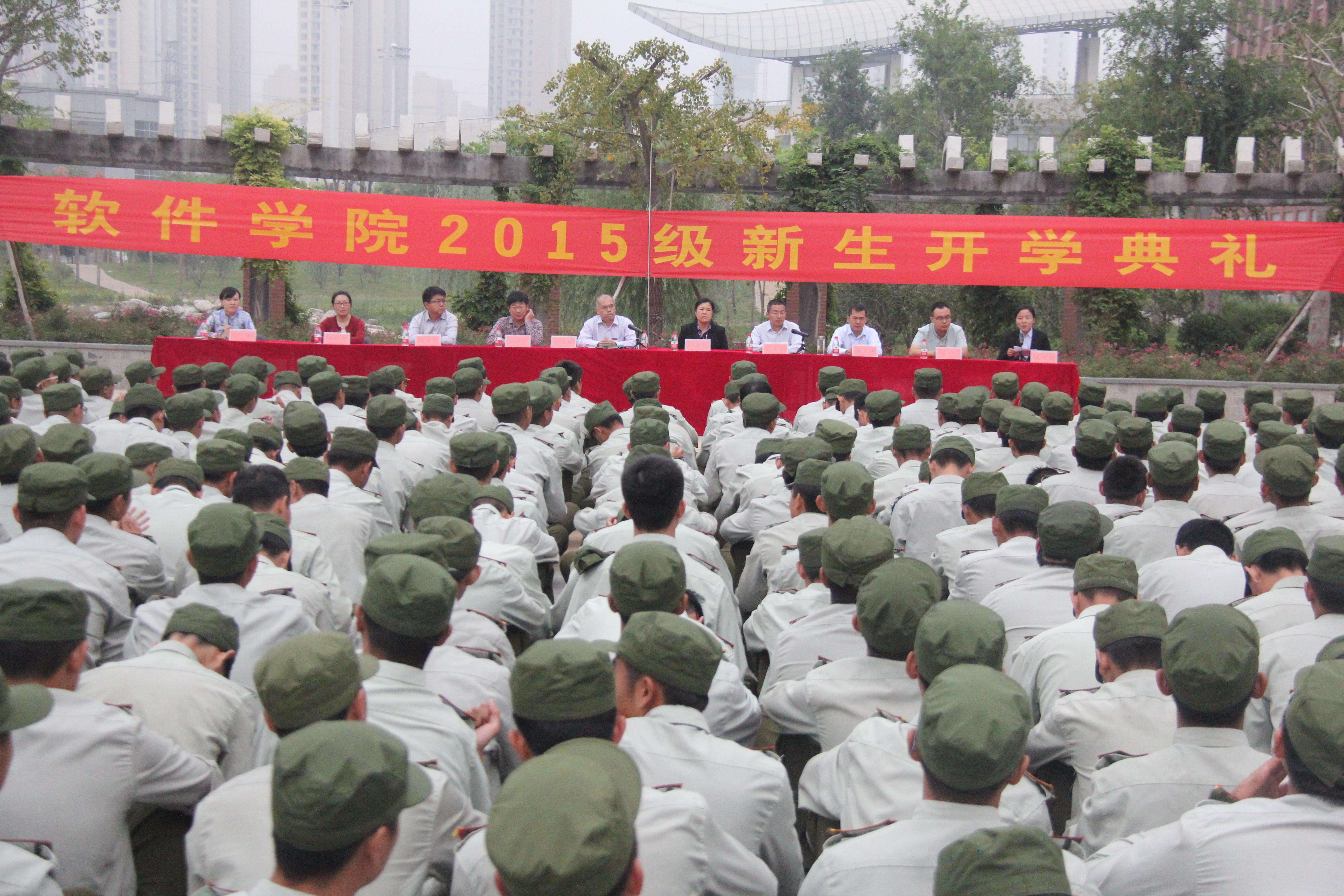 9月29日上午,软件学院在科学校区图书馆南广场举行2015级新生开学典礼。软件学院党政领导,各教研室、实验室、办公室和分团委负责人以及全体辅导员老师出席了典礼,我院2015级1000余名新生参加了典礼。典礼由党总支副书记武丰龙主持。