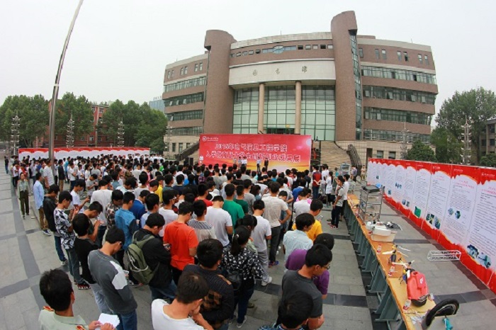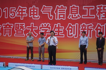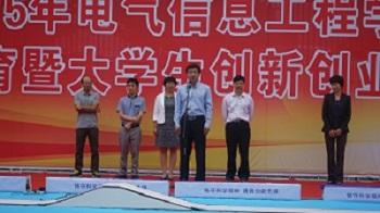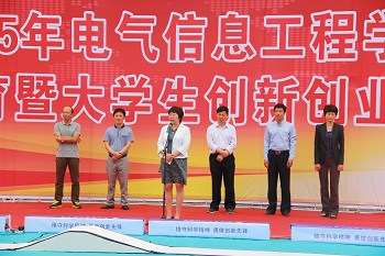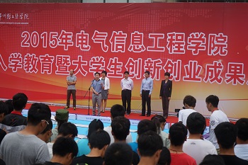 9月29日15:00,电气信息工程学院图书馆广场举办2015年新生入学教育暨大学生创新创业成果展。校团委书记张世涛、就业指导中心主任万顺国、学生处副处长蒋玮、学院领导班子、全体专兼职辅导员、班主任及2015级全体学生参加会议。会议由党总支副书记宋文军老师主持。