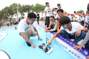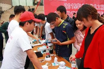 入学教育结束后,各位领导老师与同学们一起参观大学生创新创业成果展。本次入学教育与大学生创新创业成果展相结合,共展出学生近两年科技作品实物50余件,通过展板等形式介绍各类学科竞赛10余项,获奖作品20余项及创业成果10余项。通过入学教育和成果展示,2015级新生对大学四年学习生活有了明确了解,对大学生创新创业有了更深的认识。学院将进一步通过专业简介、德育学分讲座、职业规划指导等形式,引导新生尽快适应大学生活。