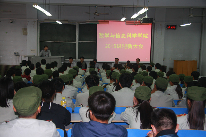 会上,院党总支书记黄守佳老师致欢迎词,对2015级新生的到来表示热烈欢迎。并向学生介绍了郑州轻工业学院的发展历程、现状和数学与信息科学学院的状况,同时对2015级新生提出了希望和要求。希望新生以此为新起点,规划好自己的大学生活,学会熟悉身边的环境,尽快融入大学生活;要勤奋学习,练就过硬的本领;要加强道德修养,注重道德实践。副院长黄士国老师介绍了我院专业课程设置和学籍管理规定,就掌握学习方法,树立正确的专业思想等方面提出了希望和建议。