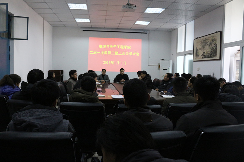 下午,物理与电子工程学院在东一楼301会议室召开二届一次教职工暨工会会员大会。学院全体教职工暨工会会员参加了大会。会议由党总支书记朱晓东主持。