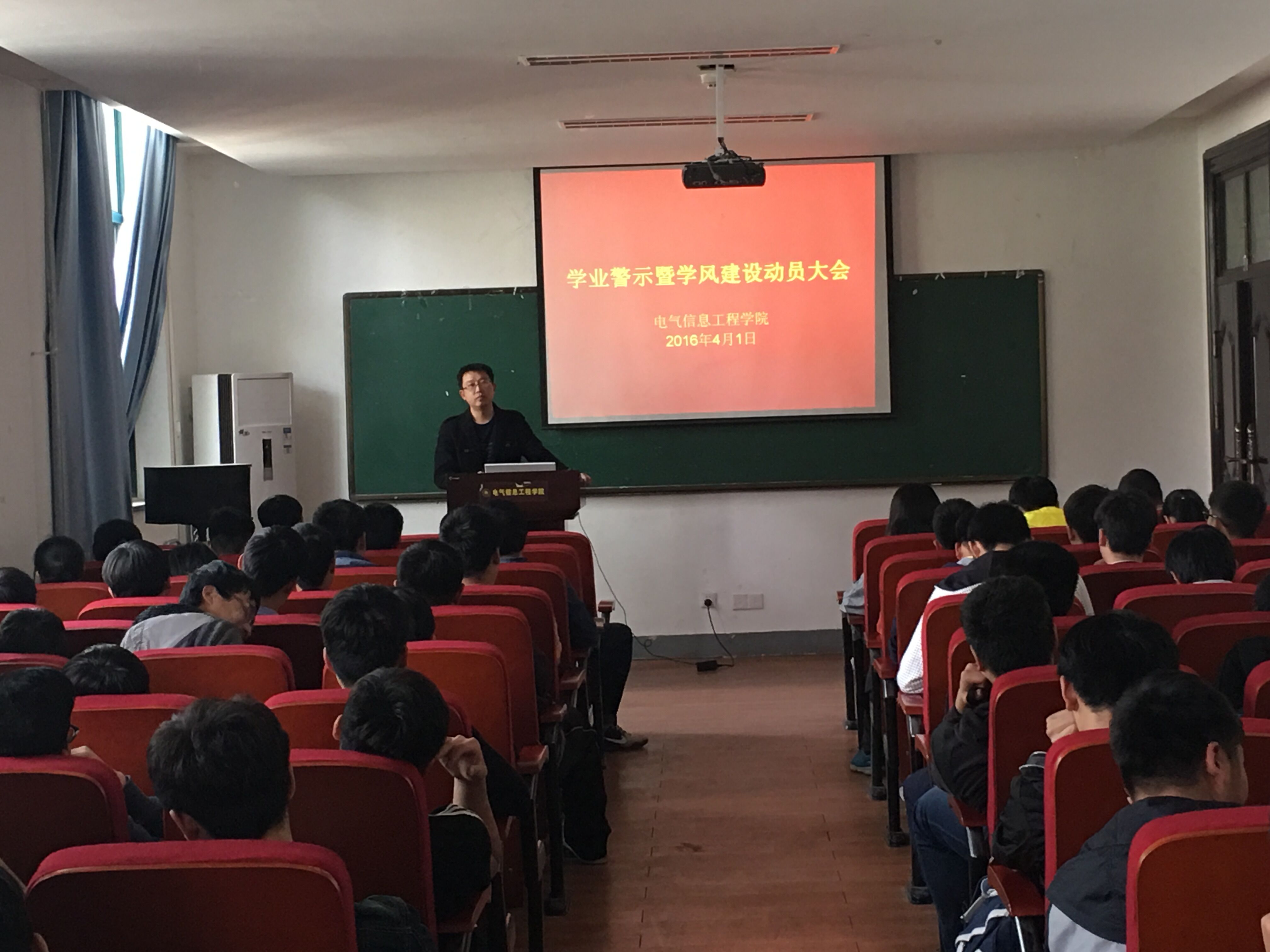 4月1日,电气信息工程学院在西二楼202召开学业警示暨学风建设动员会,学院党总支副书记宋文军老师、各专兼职辅导员、学生会学习部成员、各专业班级班长、团支书、学习委员及受警示学生近150人参加会议。