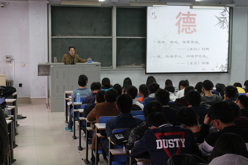刘德伟博士以“道德”的内涵作为出发点,通过日常生活中的案例分析,总结了当代社会的道德现状及开展大学生“道德讲堂”的必要性和紧迫性。通过讲解中国传统道德的特点,提出了对新时代大学生的道德要求:上善若水,厚德载物。最后,鼓励同学们要以“为之则易,不为则难”的校训作为行动指南,使中华传统美德之花在物理与电子工程学院越开越鲜艳。