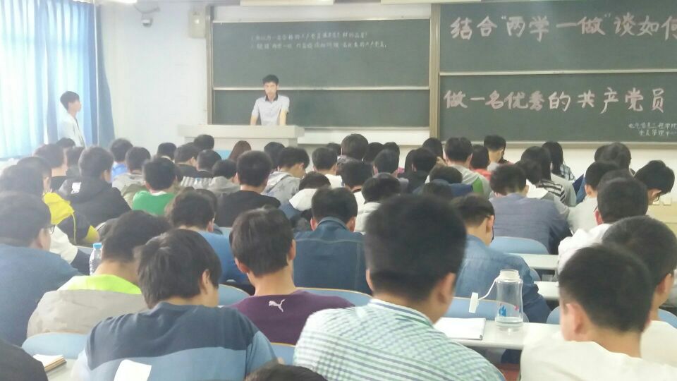 为深入学习贯彻习近平总书记系列重要讲话精神,推动全面从严治党向基层延伸,4月14日16:30,电气信息工程学院在教三楼805开展“两学一做”主题团日活动,学院团员代表、入党积极分子近100人参加活动。