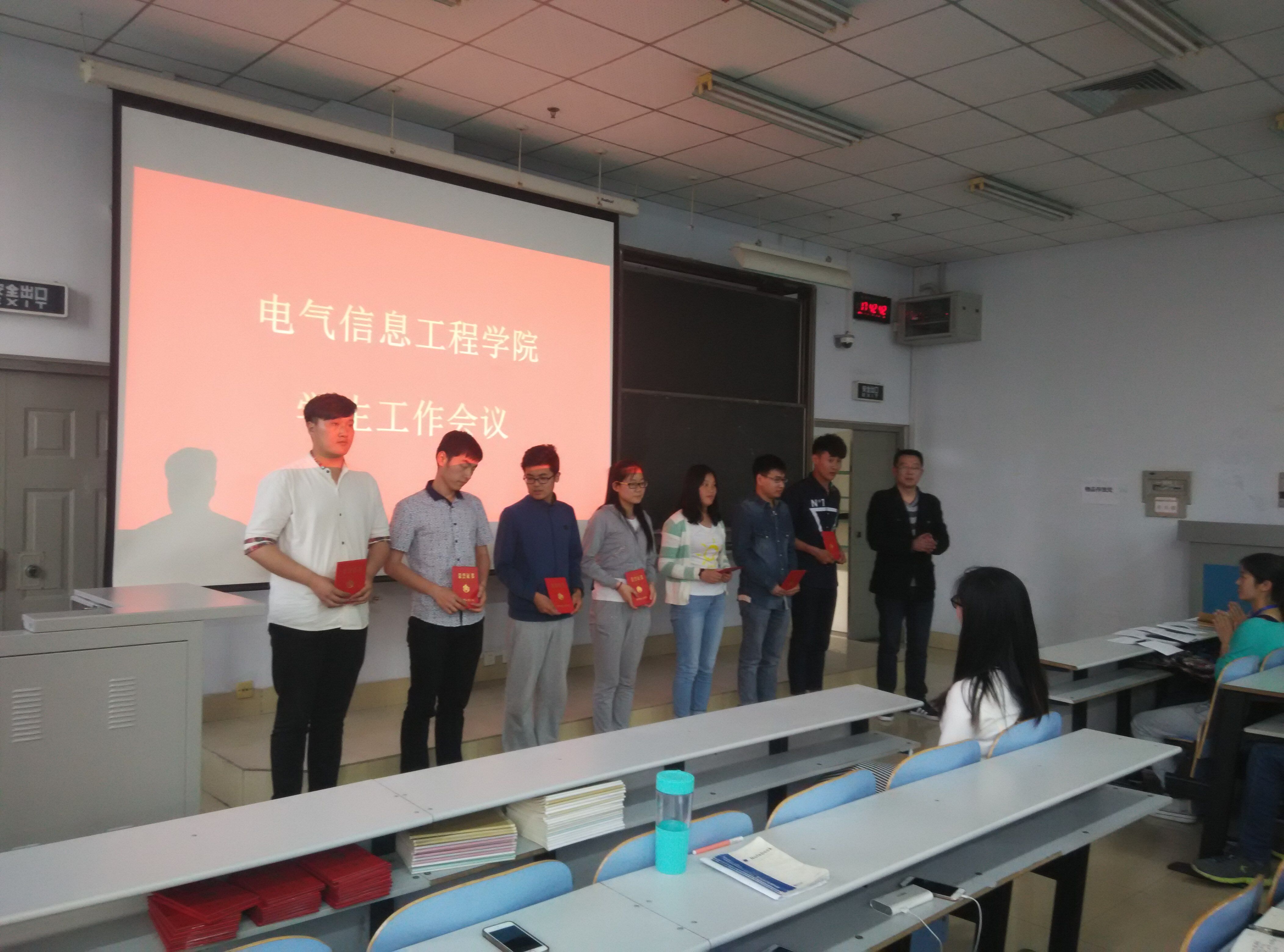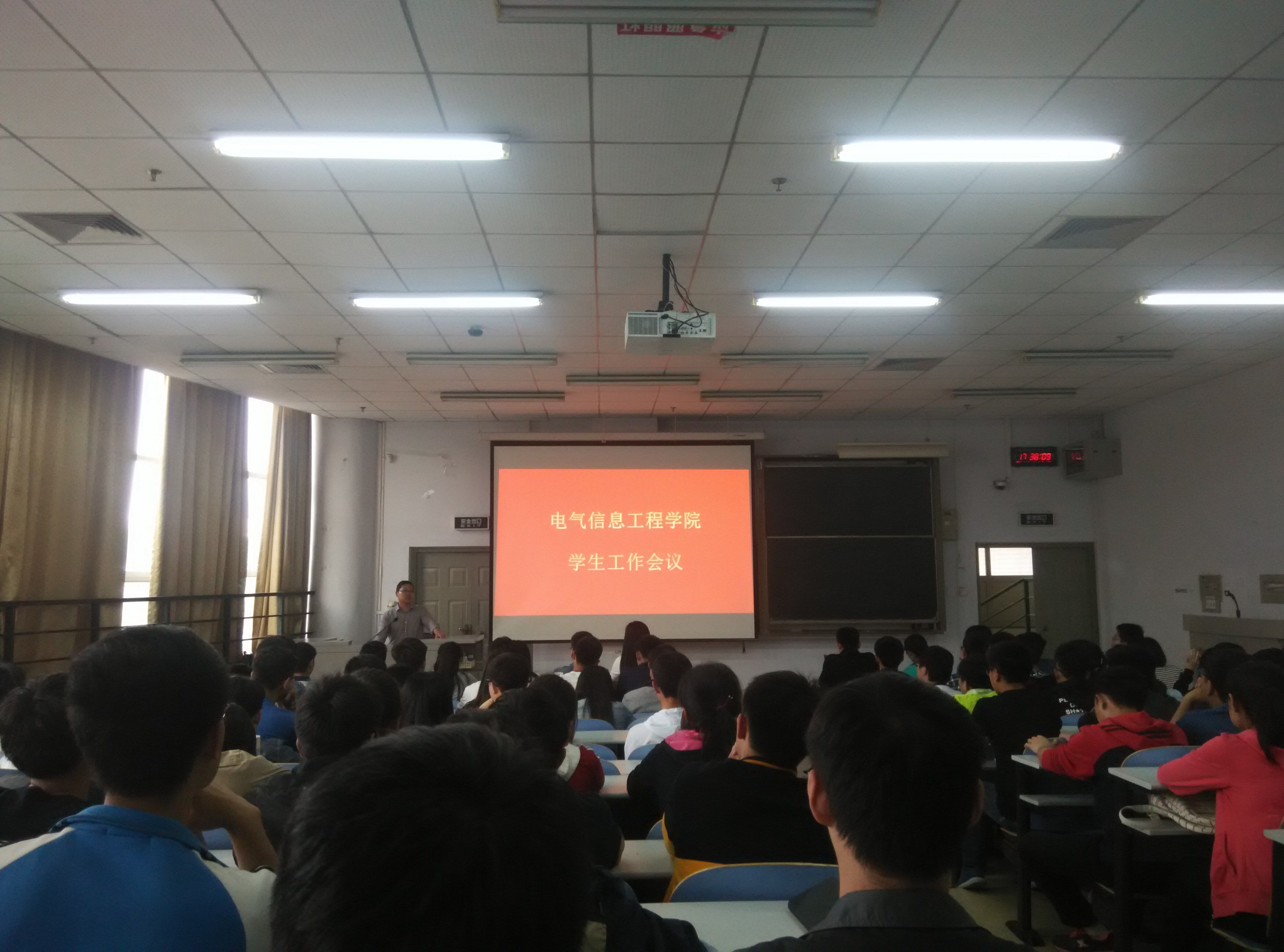 4月14日17:30,电气信息工程学院在教三楼201召开本学期学生工作会议。党总支副书记宋文军老师及学院全体学生干部近150人参加大会,大会由分团委书记许海龙老师主持。