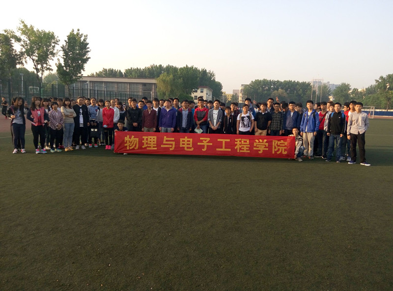 为了增强我院学生的身体素质,引导学生形成良好的学习、生活习惯,物理与电子工程学院4月19日组织了阳光晨跑活动,2015级全体学生以及学生会体育部成员参加了本次晨跑。
