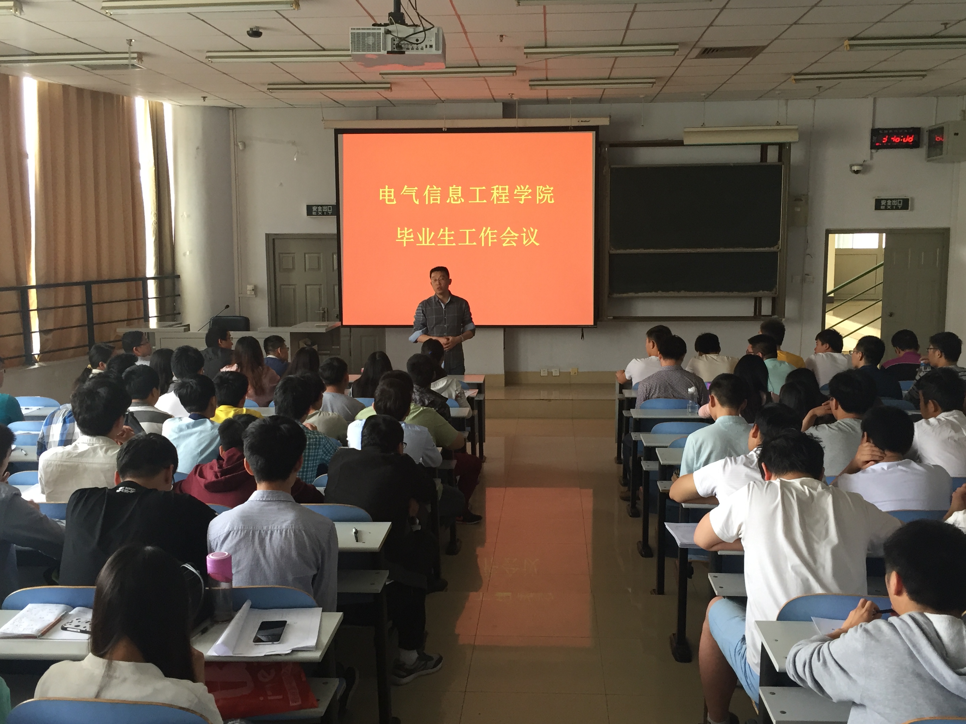 5月10日9:00,电气信息工程学院在教三楼201召开2016届毕业生工作会议,党总支副书记宋文军老师、专兼职辅导员及全体毕业生参加会议。