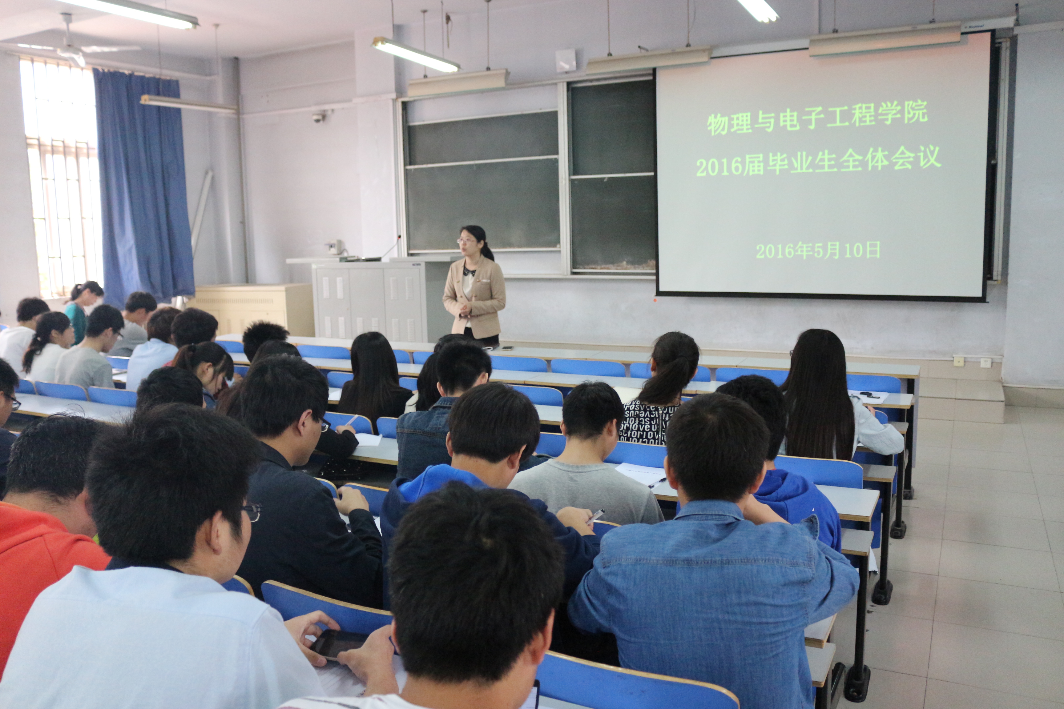 为了进一步推进我院毕业生工作,5月10日中午,物理与电子工程学院在东一楼318召开了2016届毕业生全体大会,党总支副书记李玲、分团委书记焦云娜及2016届全体毕业生参加了会议。