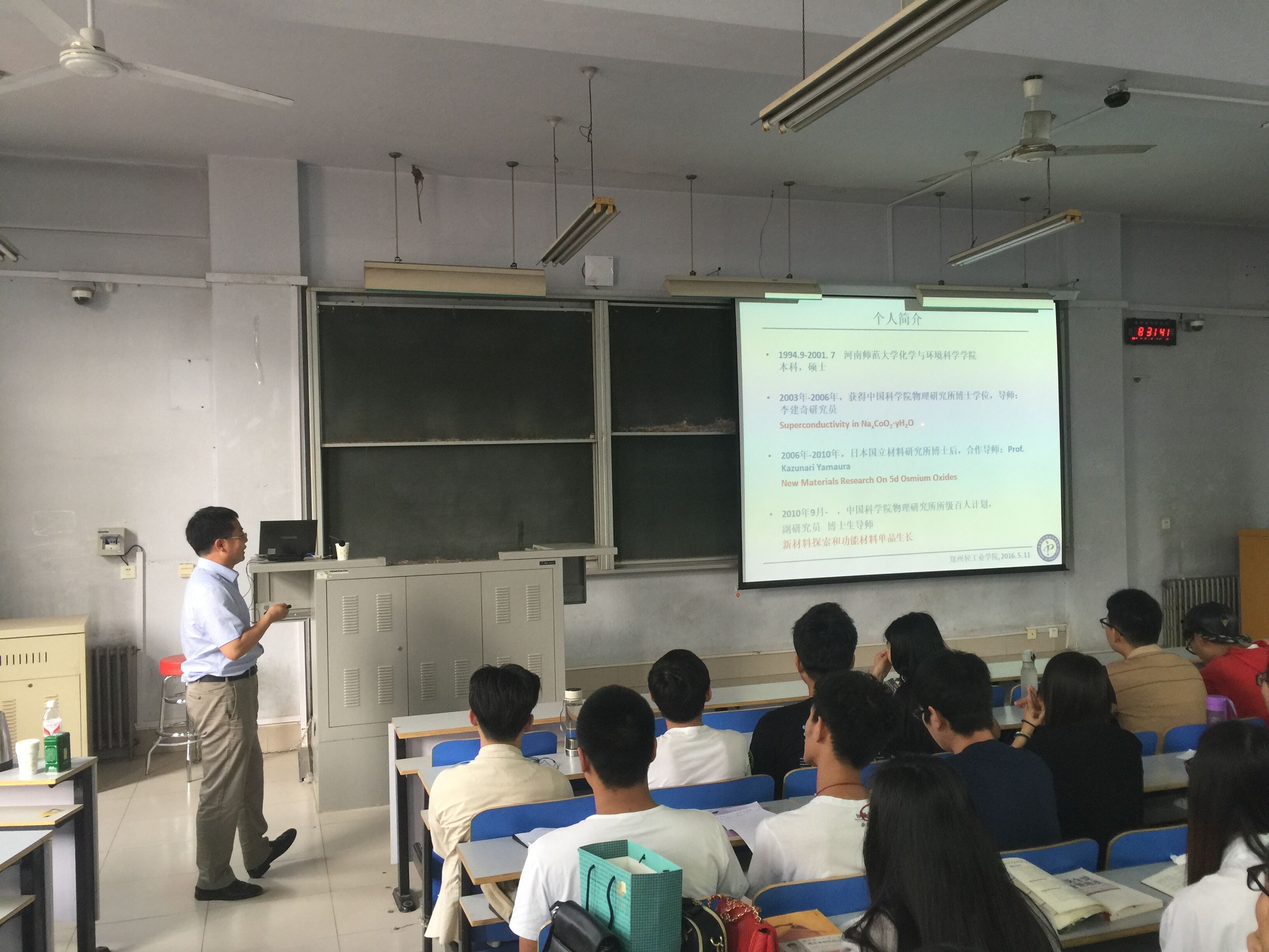 5月11日上午08:30-10:00在东风校区东一楼318,中国科学院物理研究所博士生导师石友国副研究员到我院做了题为“锇体系新材料探索和功能材料单晶生长”的学术报告。物理与电子工程学院部分教师和学生参加了报告会。报告中石老师首先介绍了自己在新材料探索中发现5d锇化合物体系中的一些奇异物性;其次就自己长期以来制备的独特的高纯单晶功能材料做了详细介绍;最后他还与大家分享了自己多年来的学习和生活经历及科研工作的心得体会,鼓励青年人要不畏困难,勇于攀登科学高峰。报告会后石老师还与大家进行了交流,回答了大家关心的一些热点问题。