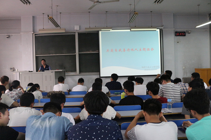 为加强对心理健康知识的宣传及普及,营造关注心理健康良好氛围,5月12日中午,物理与电子工程学院在东一楼318召开“关爱自我 善待他人”主题班会,14级材料物理专业全体同学参加了此次班会。