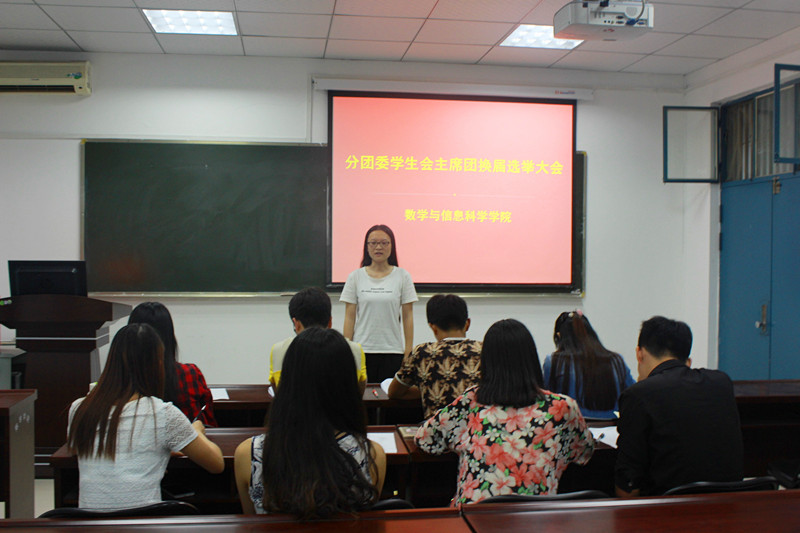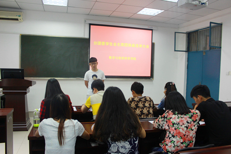 5月18日下午17时,数学与信息科学学院分团委学生会主席团换届选举大会在东一楼216会议室举行。出席本次大会的有:负责学院分团委工作的张智勤老师、13级主席团成员高明贵、强彩鹏、巫婷婷、黄娅、刘智禄、田银平、郜贵玲、丁世民、助理辅导员李朝阳。