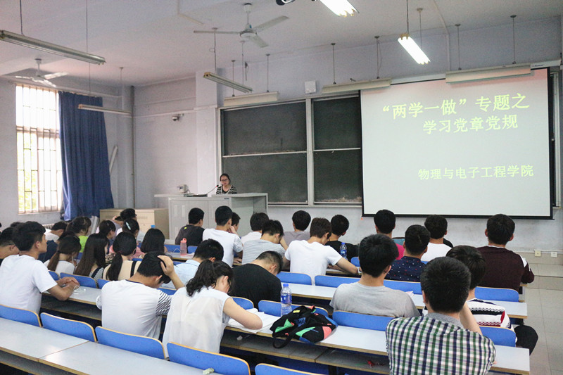 为了切实提高我院学生党支部党员队伍的思想境界和理论基础。在2016年5月19日至5月22日期间,物理与电子工程学院组织全体党员发展对象以及入党积极分子自主学习了党的理论知识相关课程。