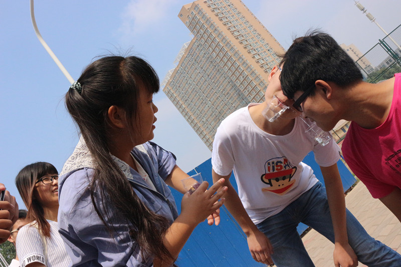 本次心理运动会包括杯水运输、瞎子背瘸子、小球逃生、六人七足、多人跳绳等5个趣味活动。在杯水运输、瞎子背瘸子和小球逃生三个活动中考验了同学们的身体协调能力和彼此的默契程度;在六人七足和多人跳绳两个活动中则考验了所有参与成员的协作能力。参与活动的同学全身心投入,现场气氛异常活跃。趣味盎然的项目不仅让同学们在愉悦中体会到团结协作和沟通交流的力量,比赛中“正能量”的传递更使同学们深切体会到了“阳光心态”的重要性。