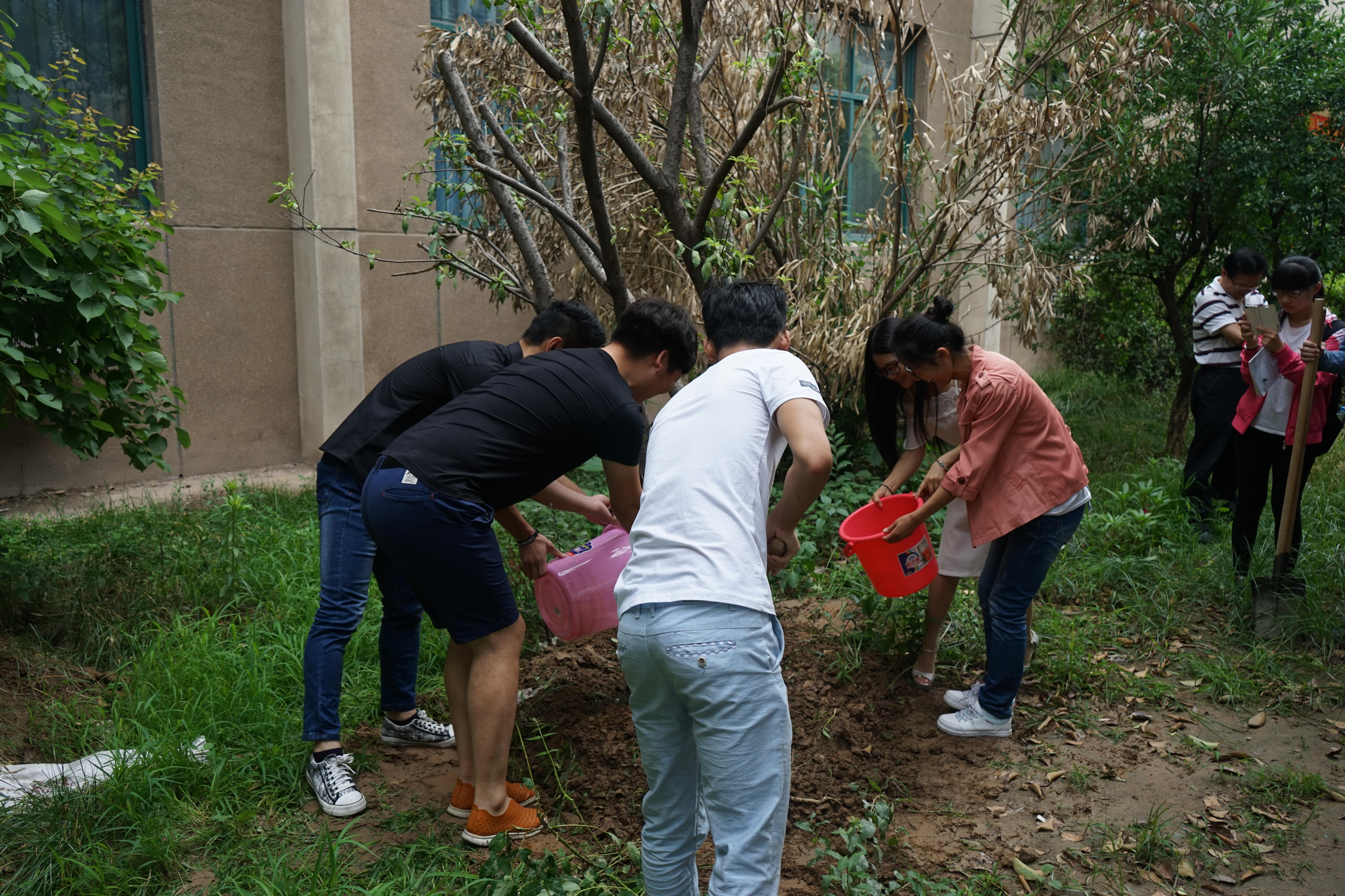 为了感谢四年来母校所给予的哺育和培养之恩,同时也为了表达同学们依依惜别的深情,2016届毕业学子们在离校之际亲手在电气信息工程学院楼前种下一棵核桃树,学院领导班子与毕业生代表一起为核桃树培土浇水。