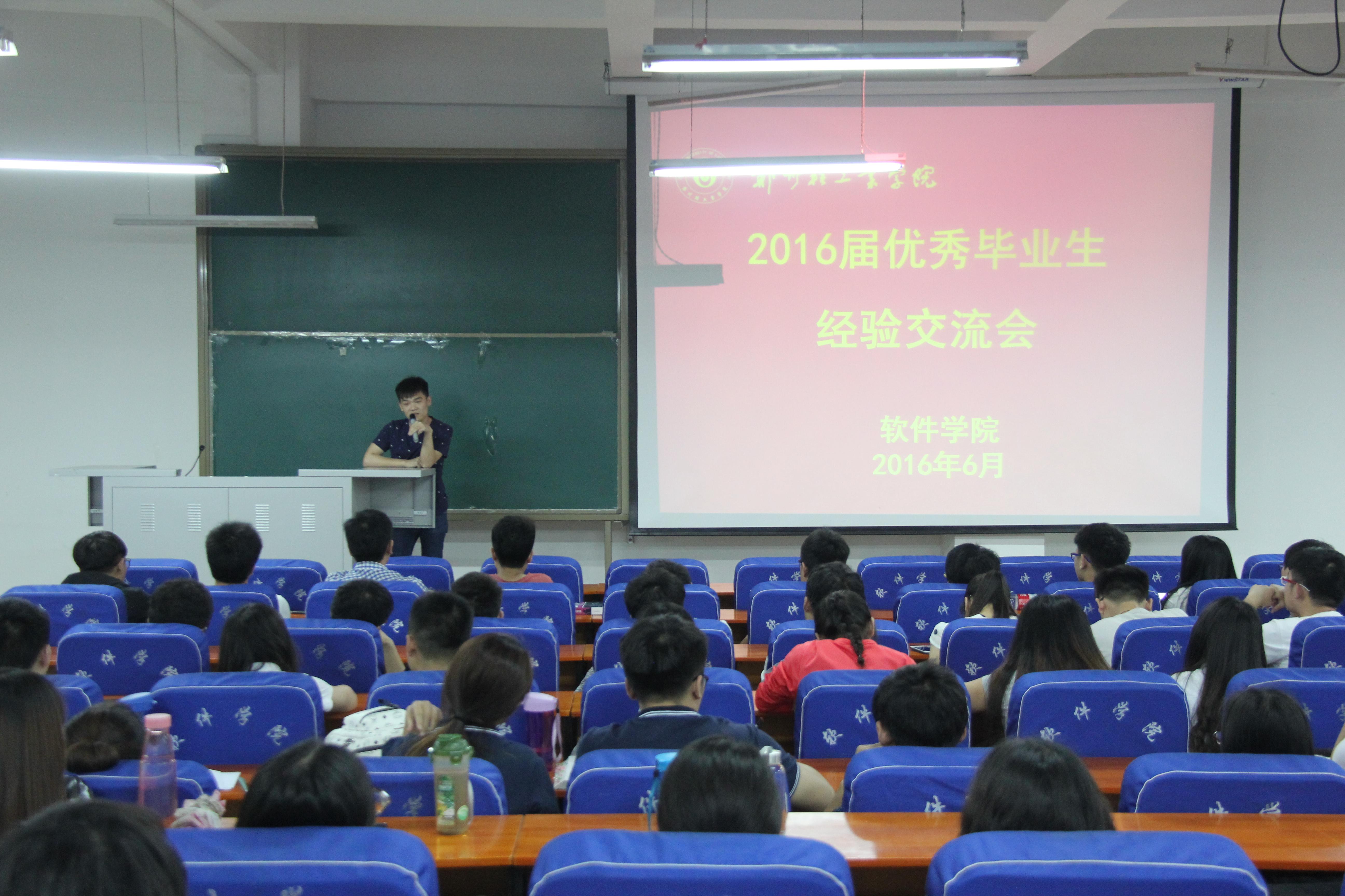 6月5日晚,软件学院在软件楼219教室成功举办2016届优秀毕业生经验交流会,邀请了在考研、就业和学生干部等方面具有代表性的九名同学作经验交流。学院2013级、2014级同学参加了此次交流会。