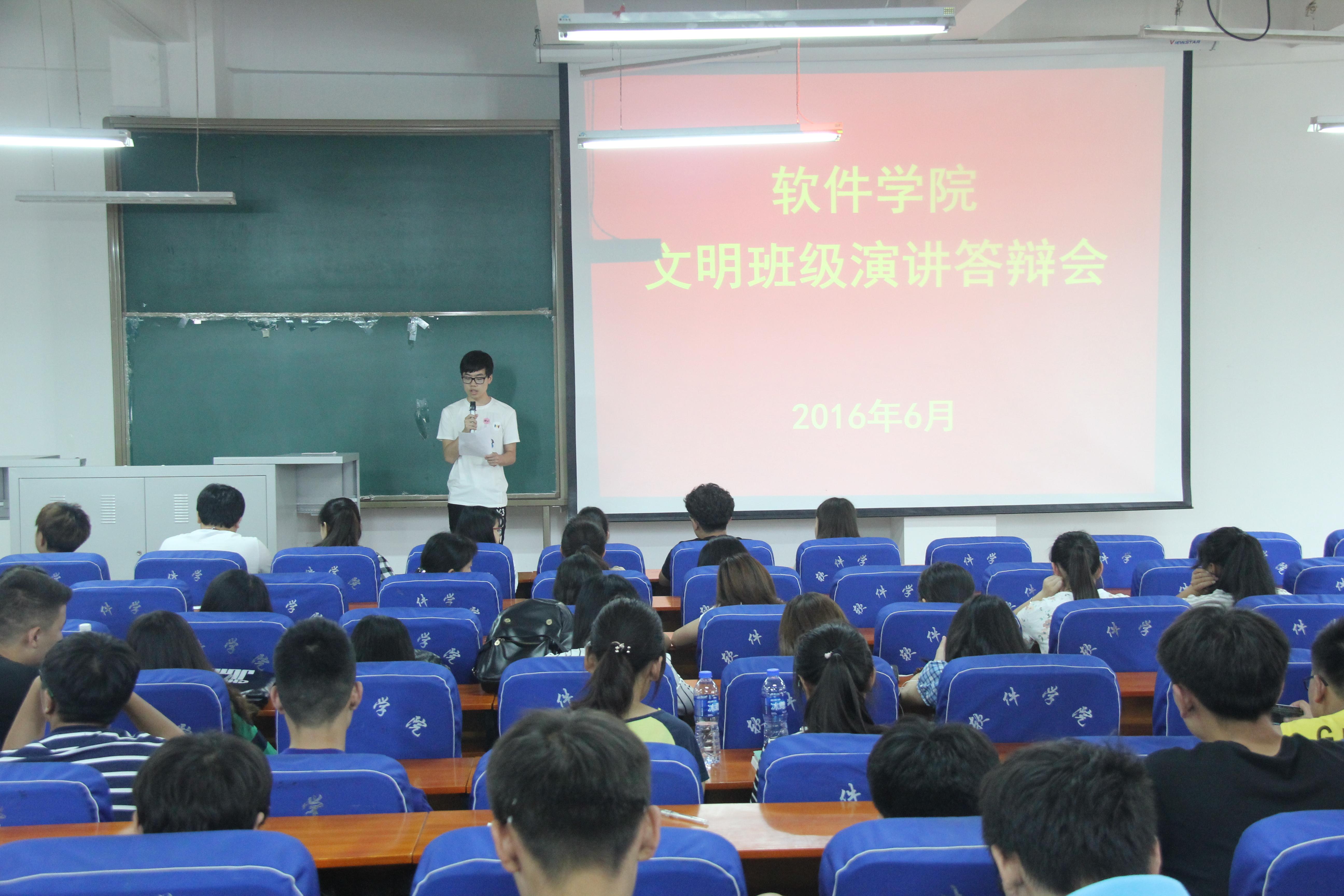 6月13日中午,软件学院在软件楼219教室成功举办2015-2016学年校级“文明班级”演讲答辩会。学院全体辅导员出席大赛并担任评委,2013级、2014级、2015级参赛班级同学代表参加了此次活动