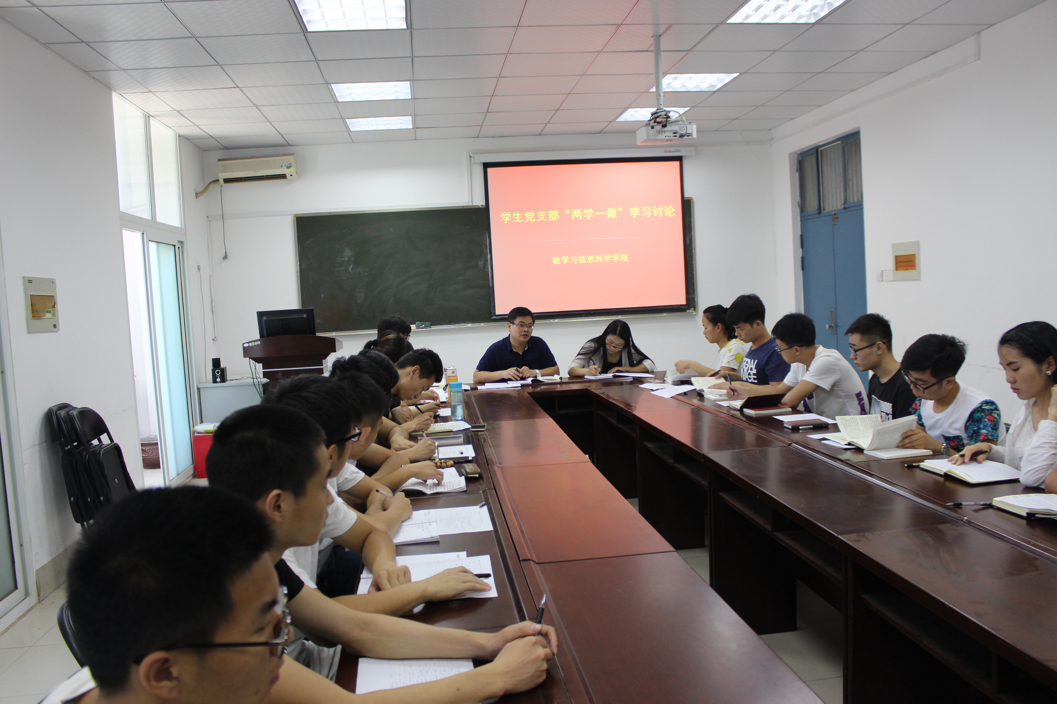 6月17日下午15:00,数学与信息科学学院学生支部在东一楼216会议室组织了“学党章党规、学系列讲话、做合格党员”专题学习研讨会。学院党总支副书记张阳老师、辅导员和全体研究生、本科生学生党员参加了会议。