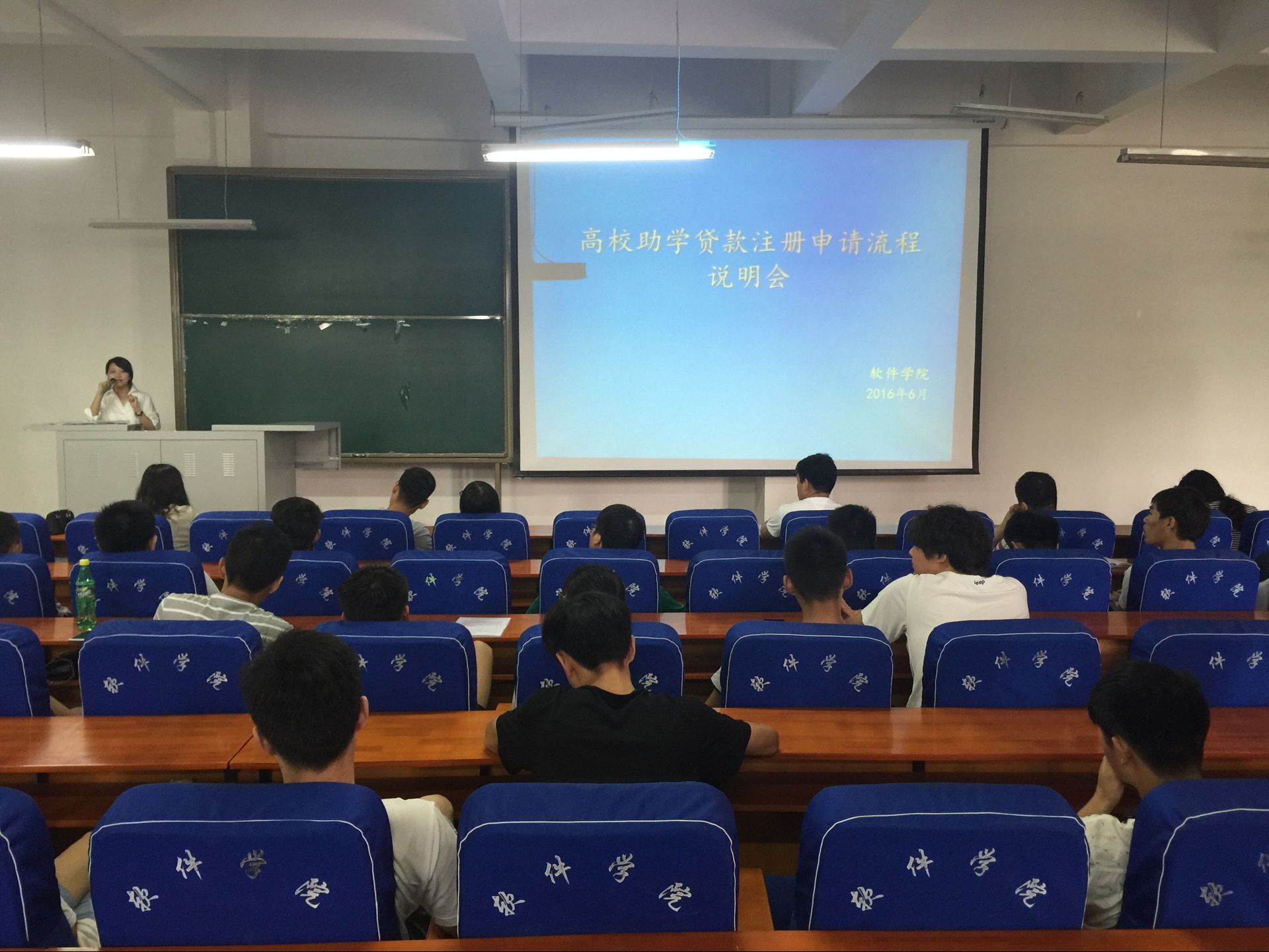 6月22日晚,软件学院在科学校区软件楼219教室成功召开2016年校园地国家助学贷款申请流程说明会。全体申请2016年校园地国家助学贷款的学生参加了会议。