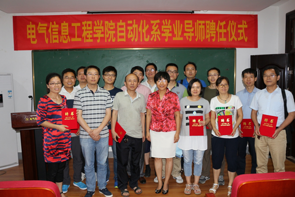 2016年6月23日下午,电气信息工程学院自动化系在西二楼202会议室举办了自动化系15级本科生学业导师聘任仪式。电气信息工程学院党总支书记曹玲芝、党总支副书记宋文军、副院长郑安平、自动化系全体学业导师和自动化系15级学生参加了此次活动,聘任仪式由自动化系主任姜利英教授主持。