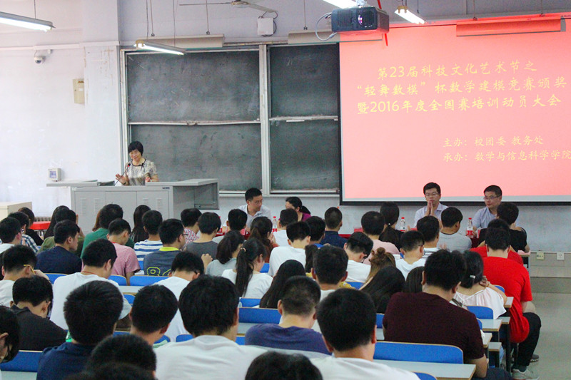 郭晓丽院长对2016年全国比赛和培训工作提出了具体要求:一是要求同学们积极参与;二是要求参赛同学积极参加培训,服从指导老师的安排,与身边的同学相互鼓励相互学习。郭院长表达了对参赛同学的殷切期盼,并预祝2016年数学建模竞赛取得更好成绩。最后,数学建模指导教师对2016年全国赛培训进行了动员。