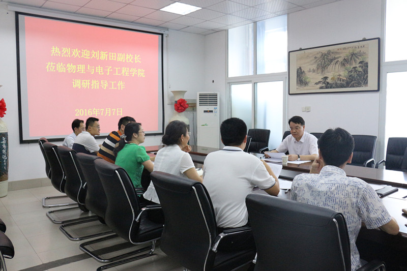 7月7日下午,刘新田副校长深入物理与电子工程学院调研指导工作。物理与电子工程学院班子成员、全体科级干部参加了调研汇报会。汇报会由党总支书记朱晓东主持。