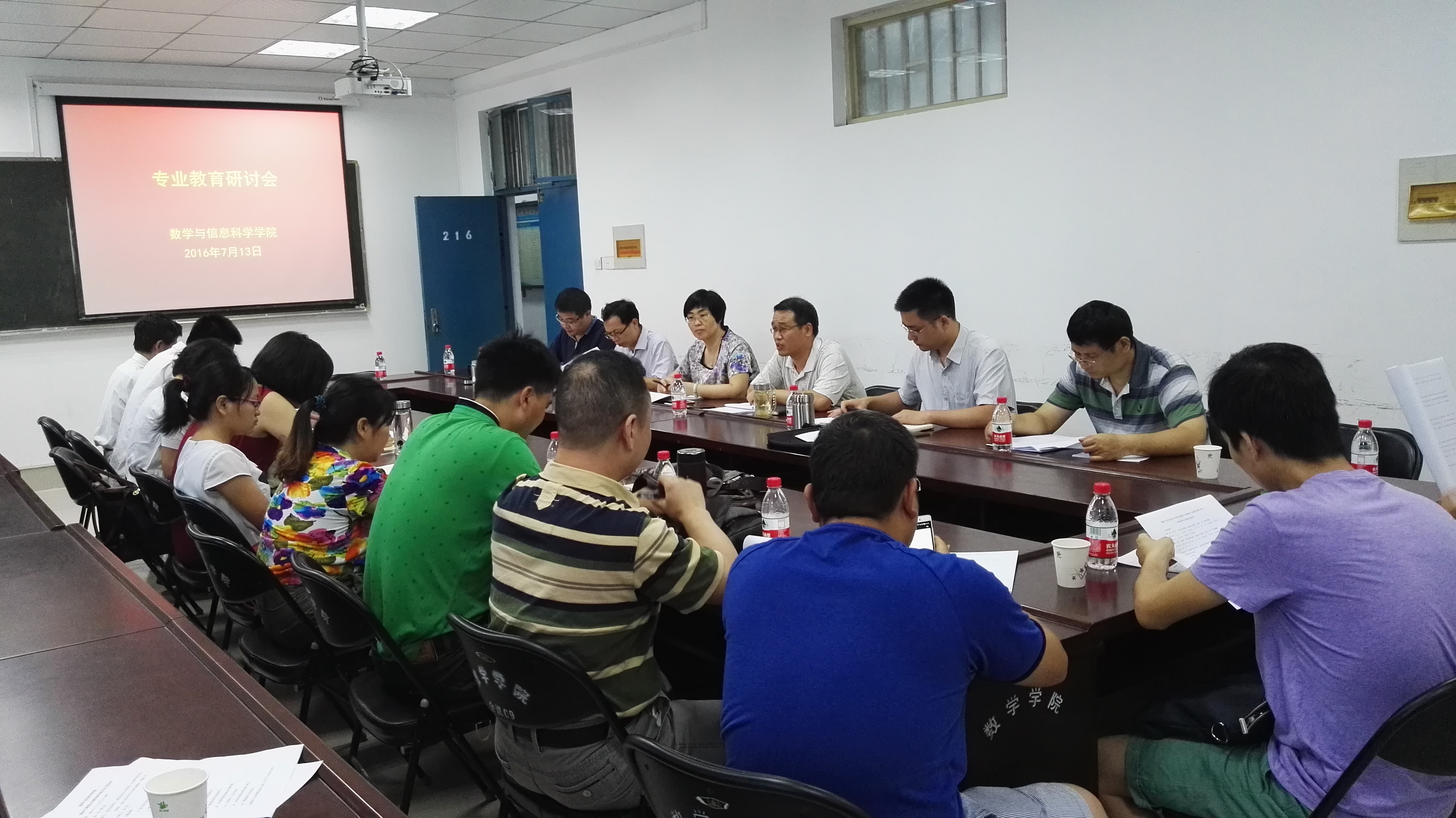 713日上午,数学与信息科学学院在东一楼216召开了2016年暑期专业教育研讨会。学院班子全体成员、教学评估中心黄莉伟科长、信息与计算科学系和应用数学系全体教师,以及2015-2016学年担任专业课教学任务的其他教师参加了本次研讨会。研讨会由副院长黄士国主持。