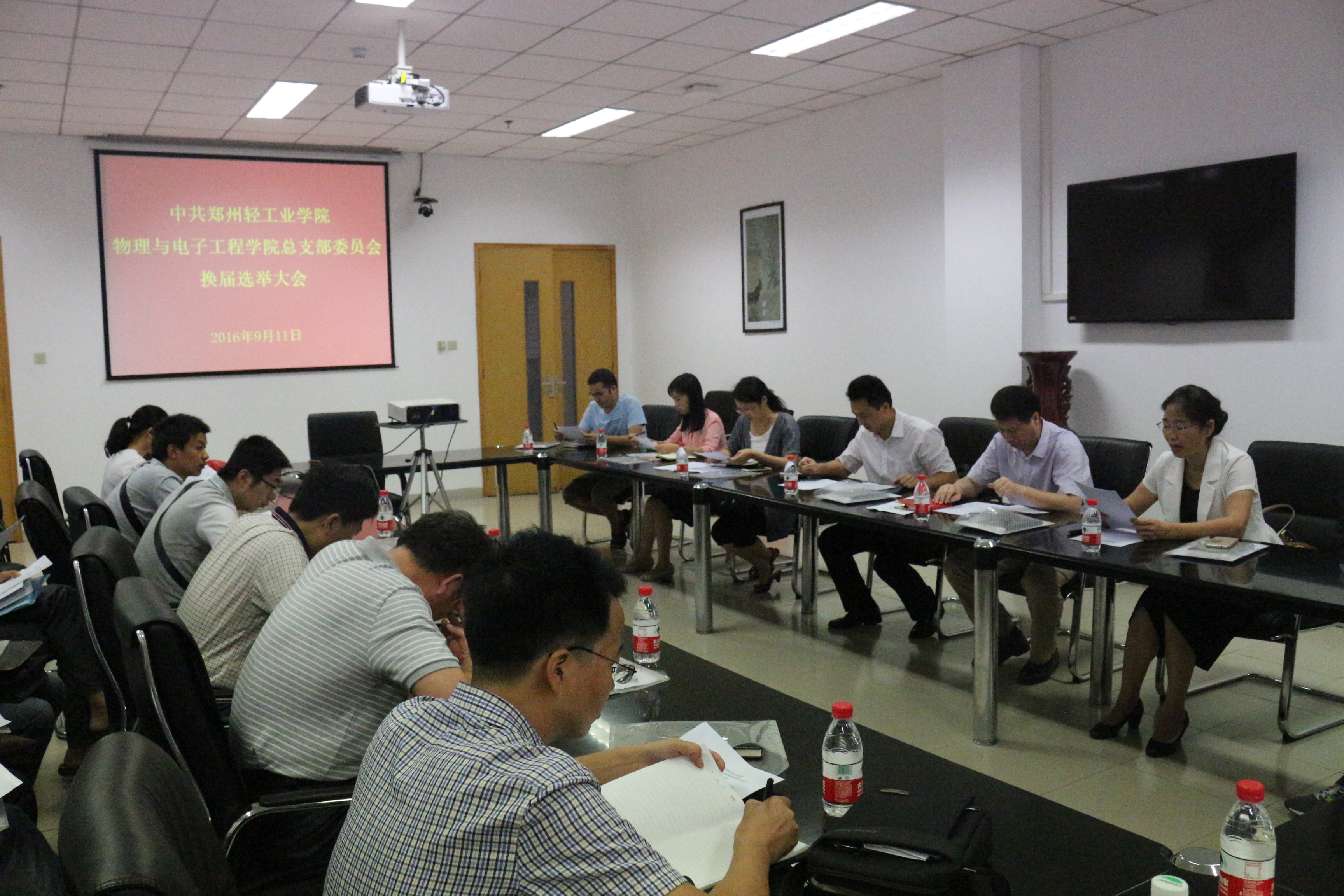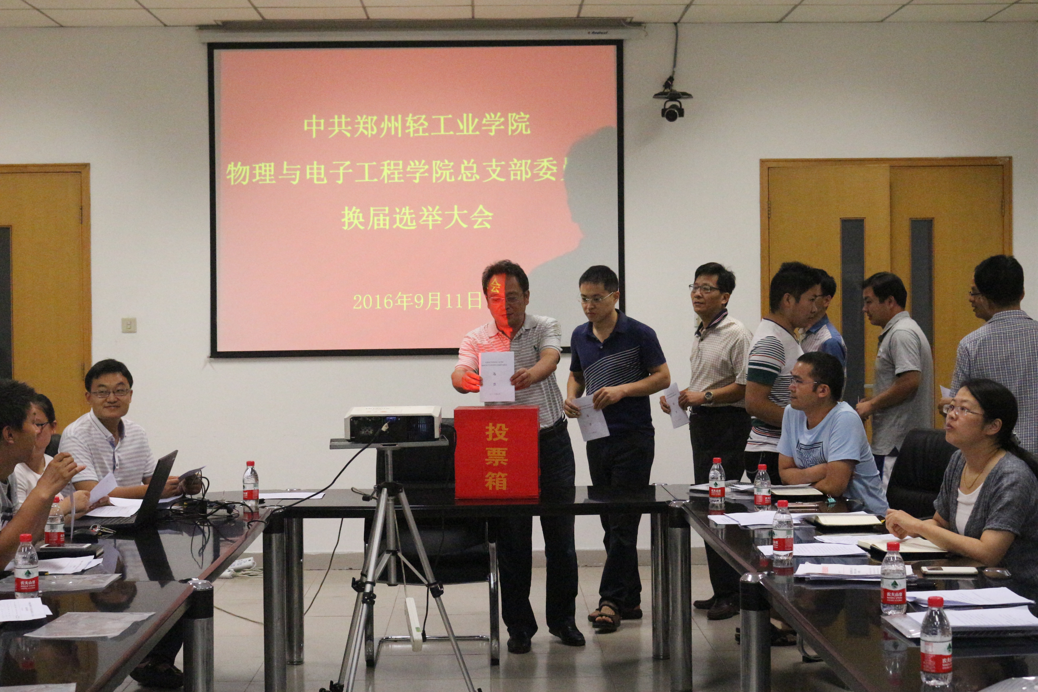 在大会选举环节,宣读了校党委《关于同意召开中共郑州轻工业学院物理与电子工程学院党员大会进行换届选举的批复》、《关于同意中共郑州轻工业学院物理与电子工程学院总支部委员会委员、书记副书记候选人预备人选的批复》文件,介绍了候选人的基本情况,通过了《中共郑州轻工业学院物理与电子工程学院党员大会换届选举办法》,通过了监票人、计票人名单。采用差额选举的办法,经无记名投票选举产生了物理与电子工程学院新一届总支部委员会。