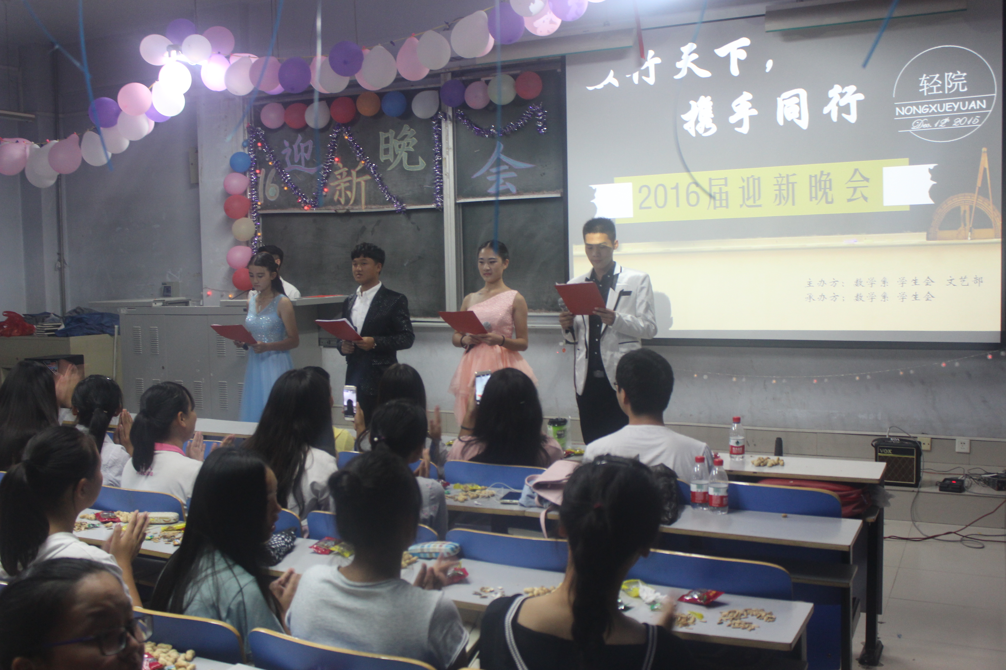 流光溢彩迎新夜,心心连新齐飞扬。9月25日晚7:00,数学与信息科学学院2016级迎新晚会在东一楼218隆重上演。学生会全体成员以及2016级全体同学参加了本次晚会。