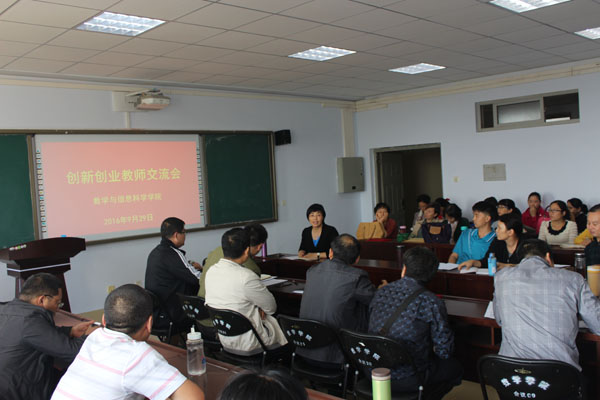 为响应国家和学校“大众创新、万众创业”的号召,营造浓厚的创新创业氛围,提高教师指导创新创业的能力、水平和综合素养,9月29日下午,数学与信息科学学院开展了“创新创业”教师交流会。会议由院长郭晓丽教授主持,数学学院全体教职工参加了会议。