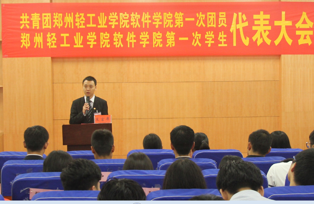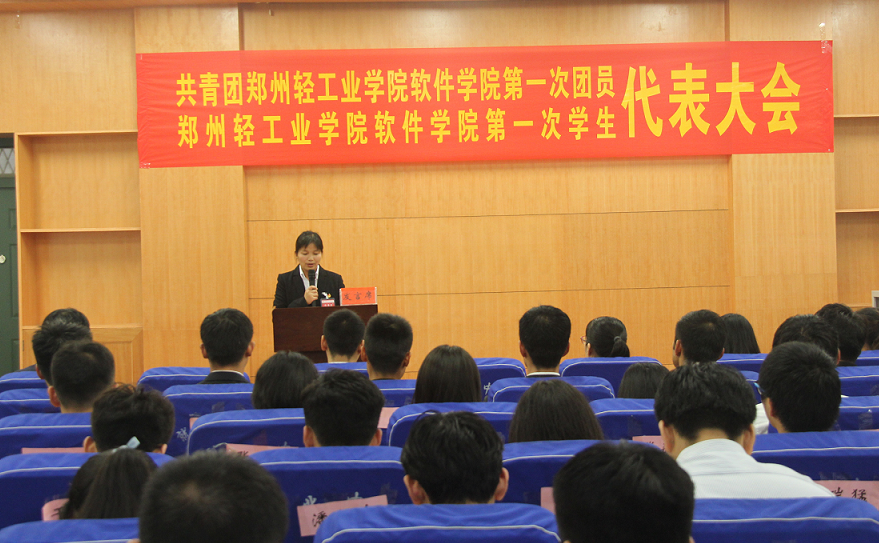 2016年10月20日,共青团郑州轻工业学院软件学院第一次团员代表大会暨郑州轻工业学院软件学院第一次学生代表大会在科学校区大学生活动中心113隆重召开。校团委葛勋书记、杨阳老师,学院党总支书记武丰龙、分团委书记刘放美、学工办主任李辉、辅导员老师,以及全体团员代表、学生代表参加此次大会。会议由学院辅导员李白毅老师主持。
