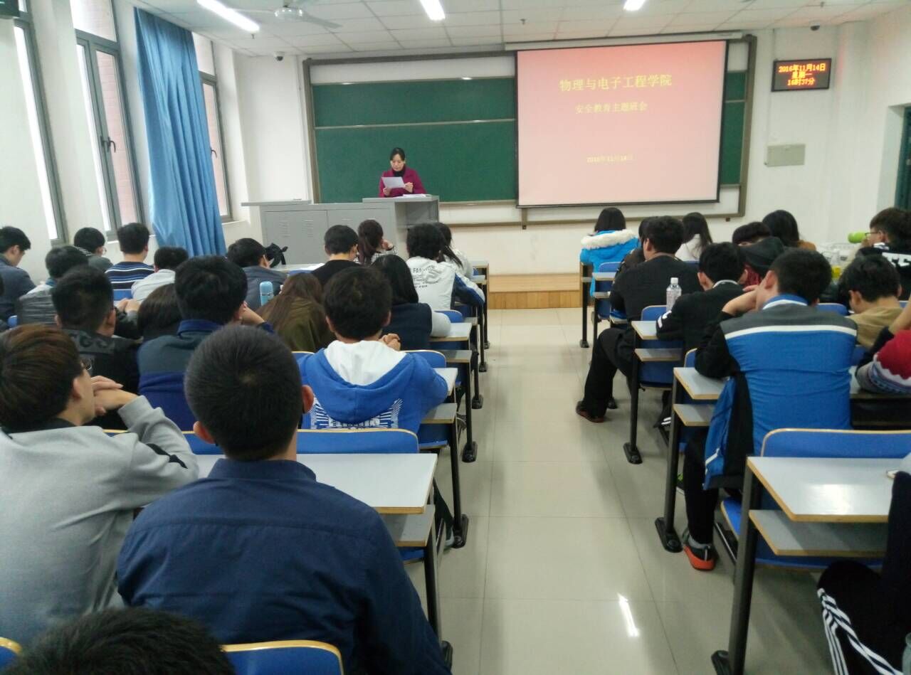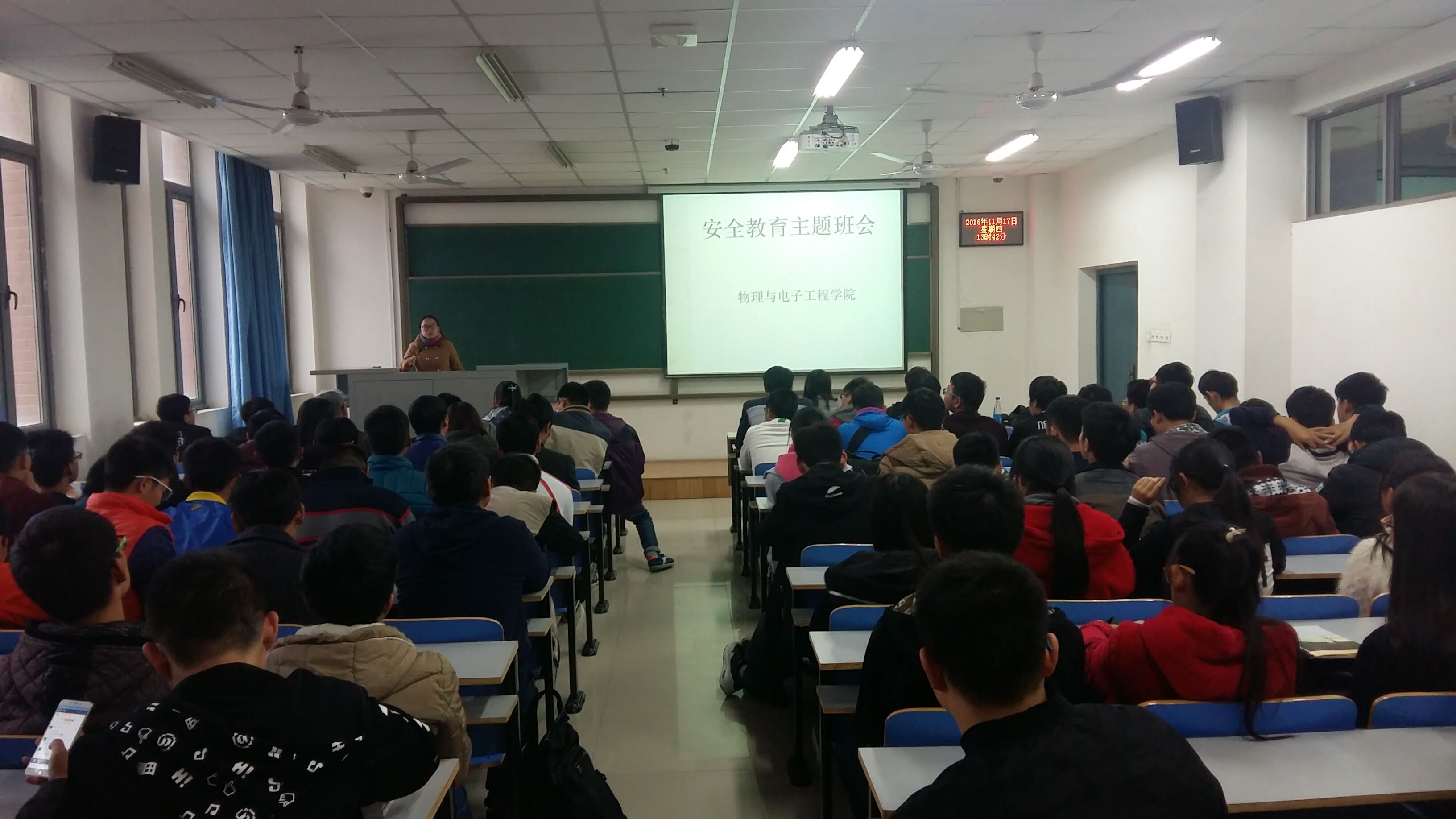为了进一步增强同学们的安全意识,提高防范能力,增进同学们对校园安全知识的了解,近期物理与电子工程学院组织召开安全教育主题班会。辅导员老师和各年级学生参加了班会。