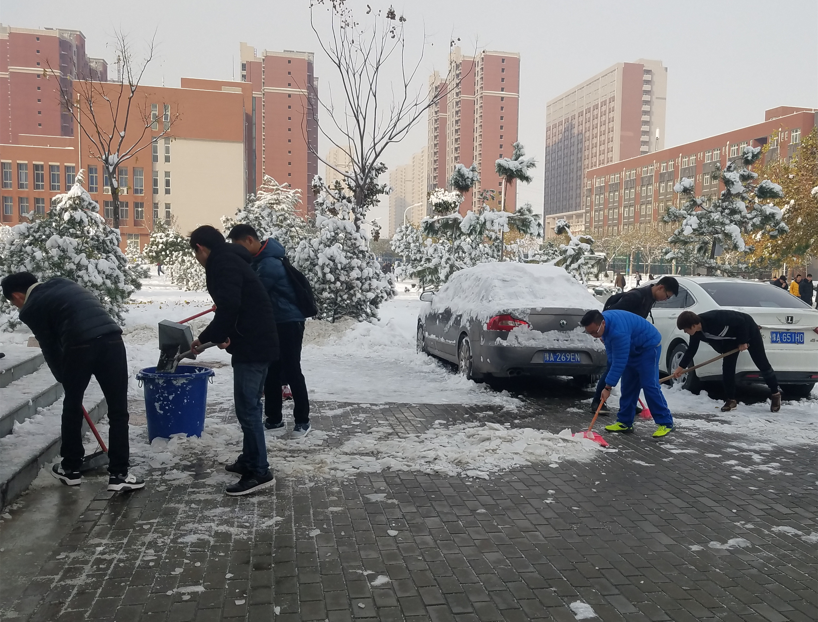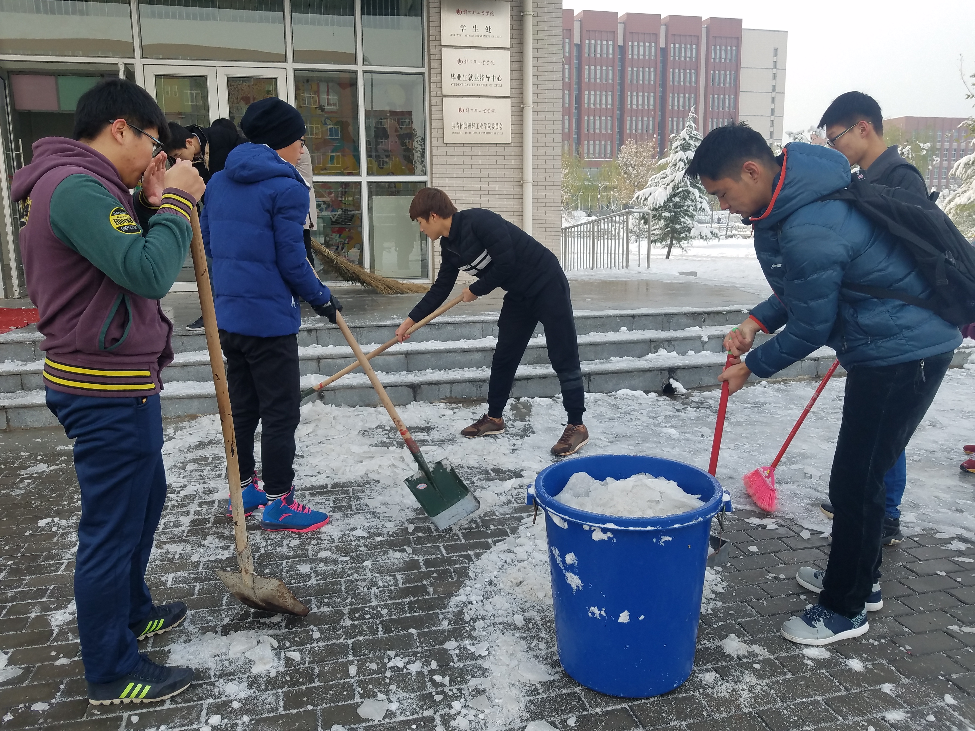 郑州普降大雪,给校园道路通行带来了不便和隐患,为保证师生在校的出行安全,