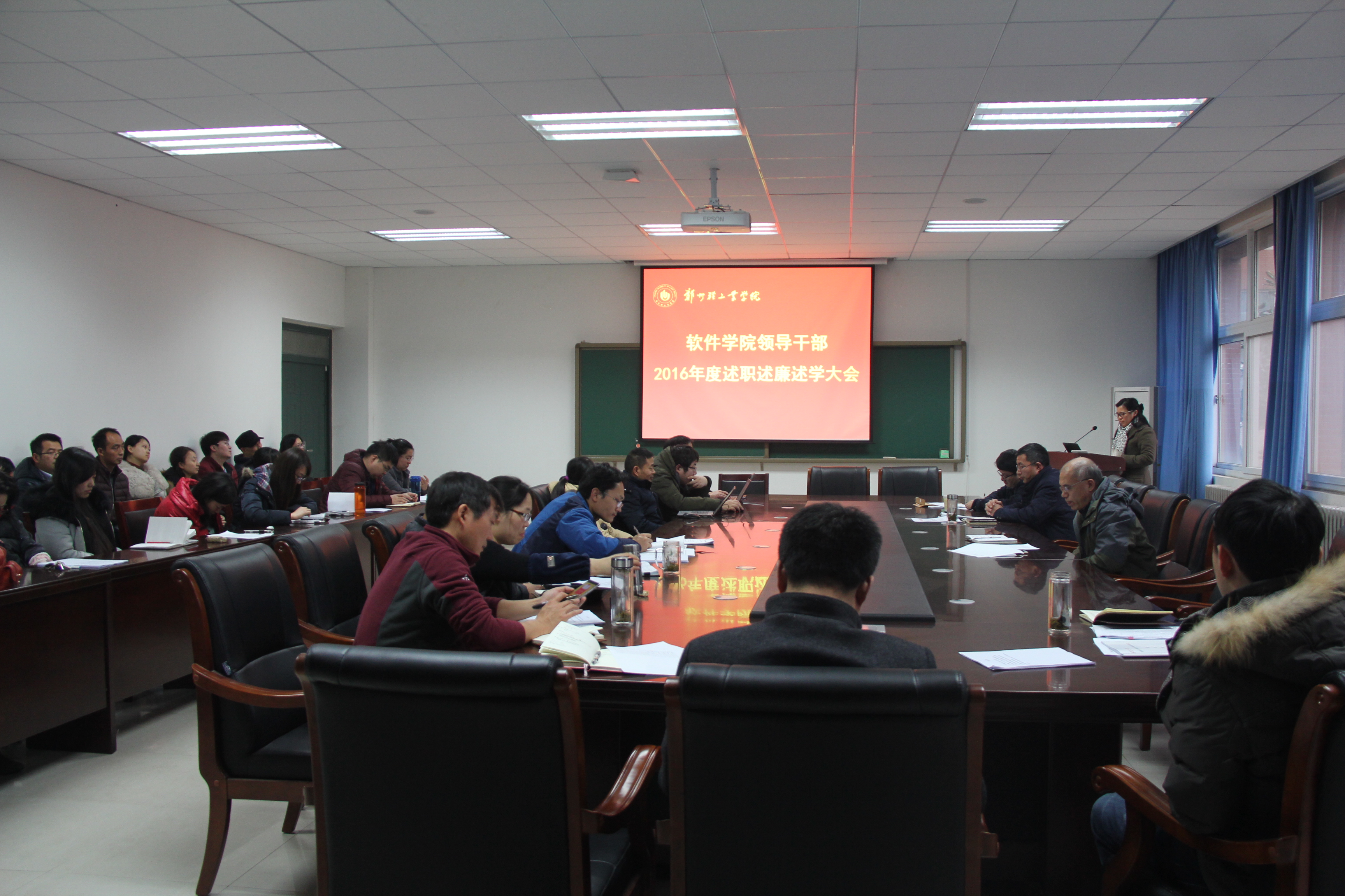 1月5日下午,软件学院领导干部2016年度述职述廉述学大会在软件楼210召开。校党委组织部陈佳佳副部长和全院教职工参加了大会。会议由党总支书记武丰龙主持。